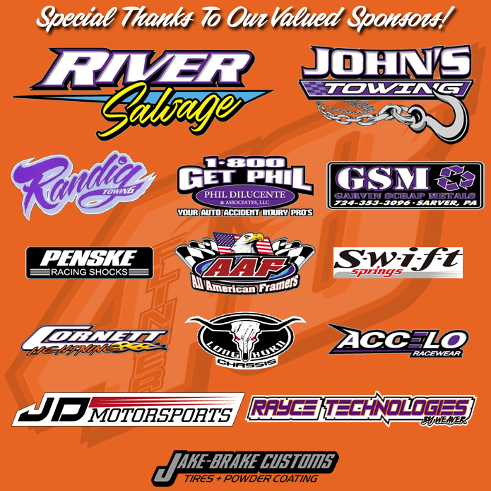 Like Us on Facebook! Follow Us on Twitter! Follow Us on Instagram! Delph Communications Penske Shocks Swift Springs Cornett Engines Garvin Scrap Metal Accelo Racewear Longhorn Chassis Randig Towing Get Phil